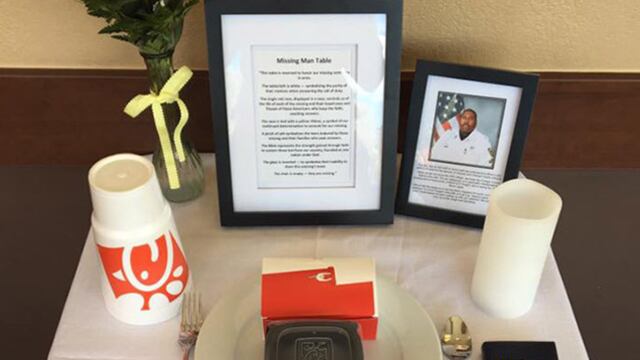 The local Chick-fil-A in Orlando posted on its Facebook page a photo of a “Missing Man Table,” which is an honor set up in military dining facilities in memory of fallen, missing, or imprisoned military service-members.