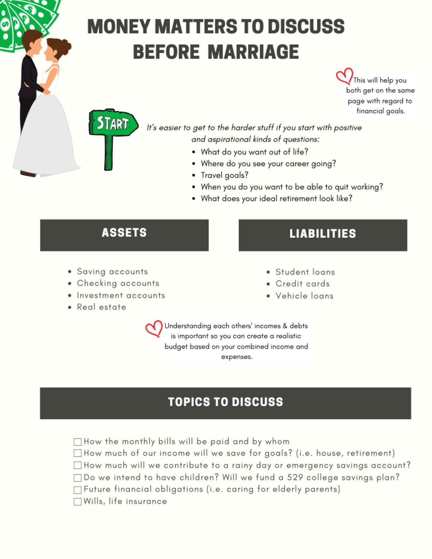 Don’t worry: We’ve got a cheat sheet to get you started on this very important prenuptial talk!