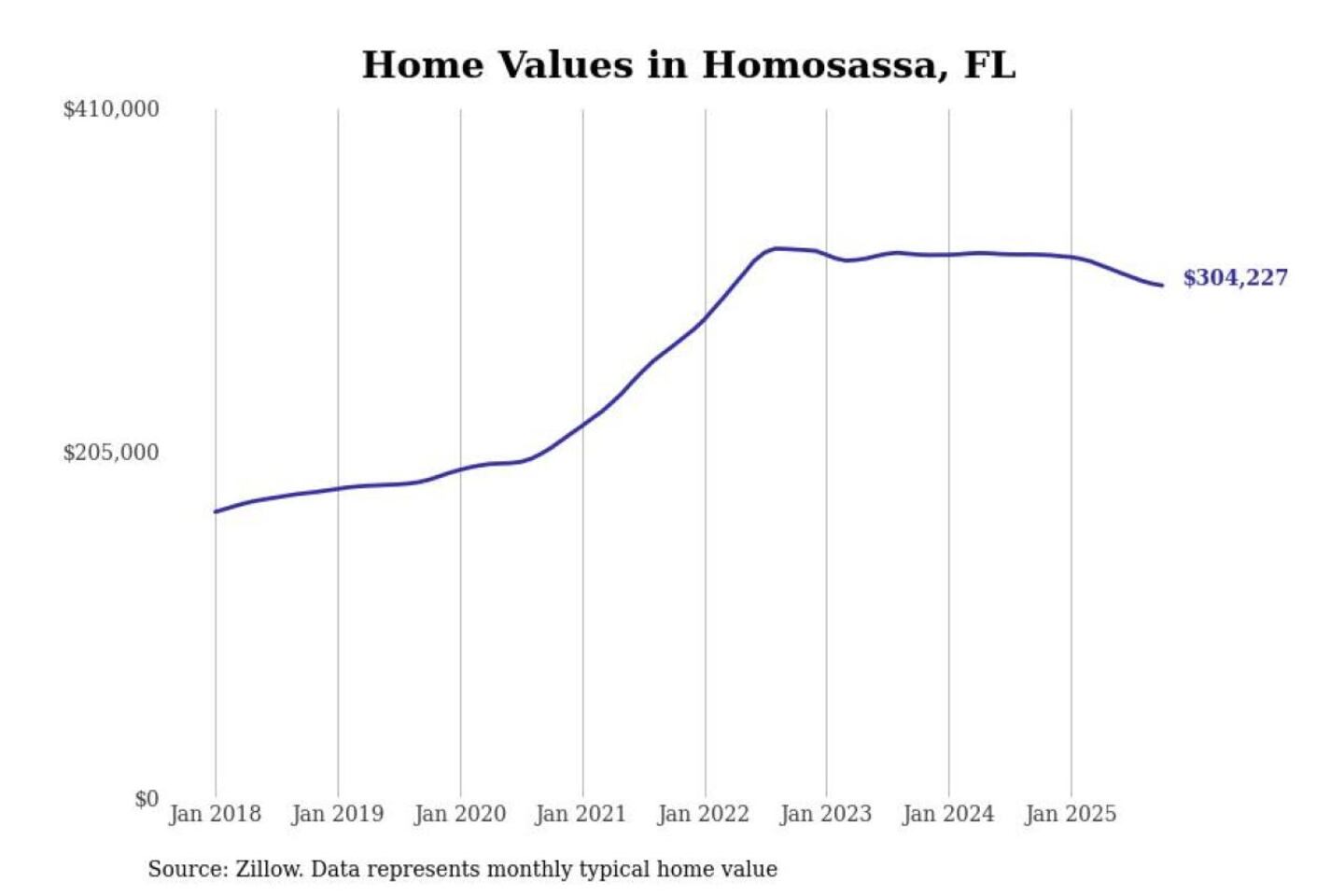 Stacker compiled a list of cities with the most expensive homes in the Homosassa Springs metro area using data from Zillow. Charts show the monthly typical home value since January 2018. All 7 cities and towns with data available were included in the list.