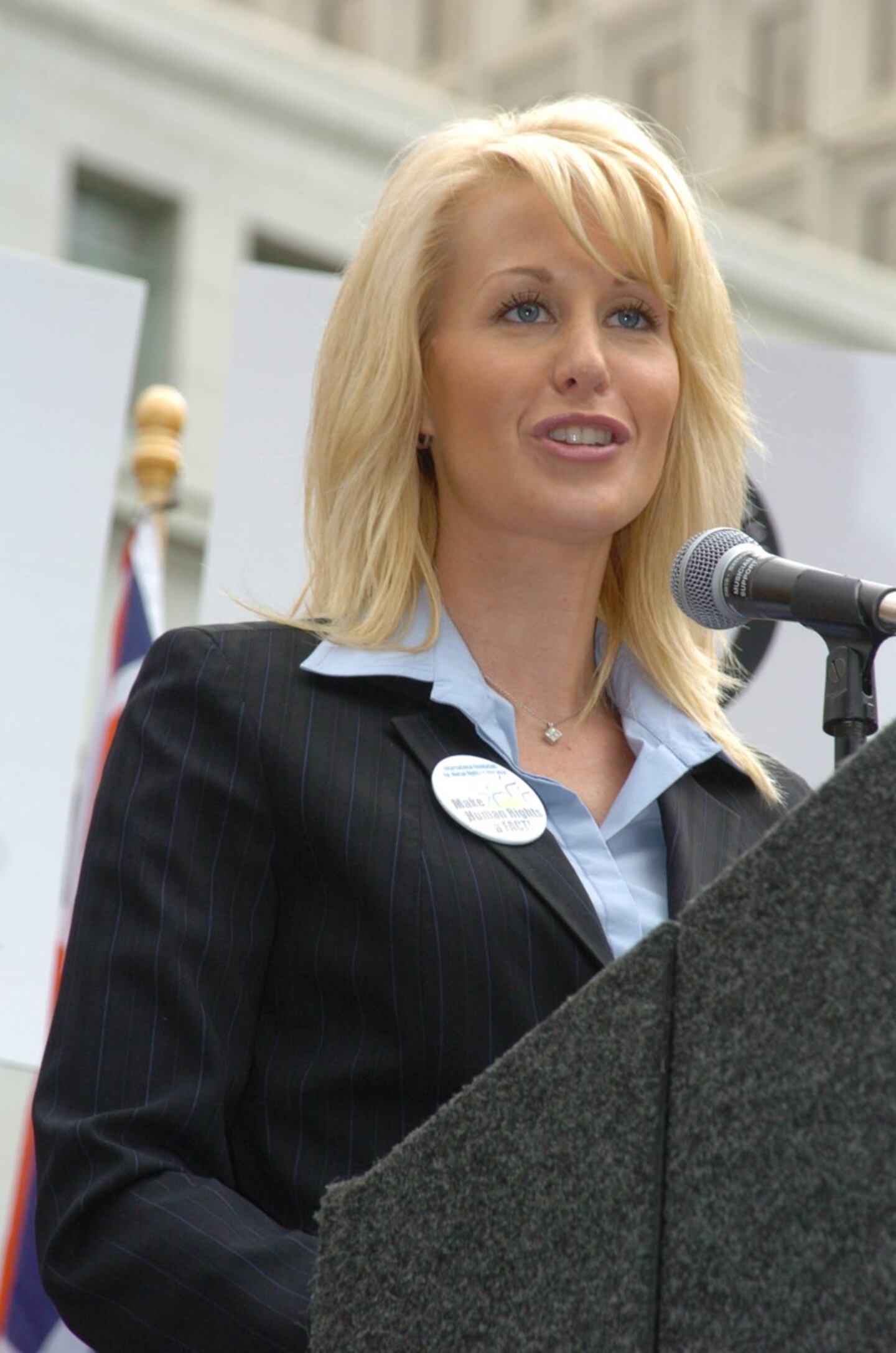 Michelle LeClair speaking at an undated Scientology event. As a major donor, she was often called on to represent the church at events.