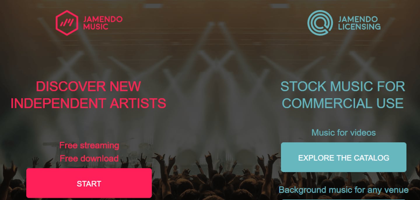 Jamendo Music is another site aimed at connecting independent artists to fans. The good thing with Jamendo.com is that you don't have to create an account to download music, just click on the Start button.
