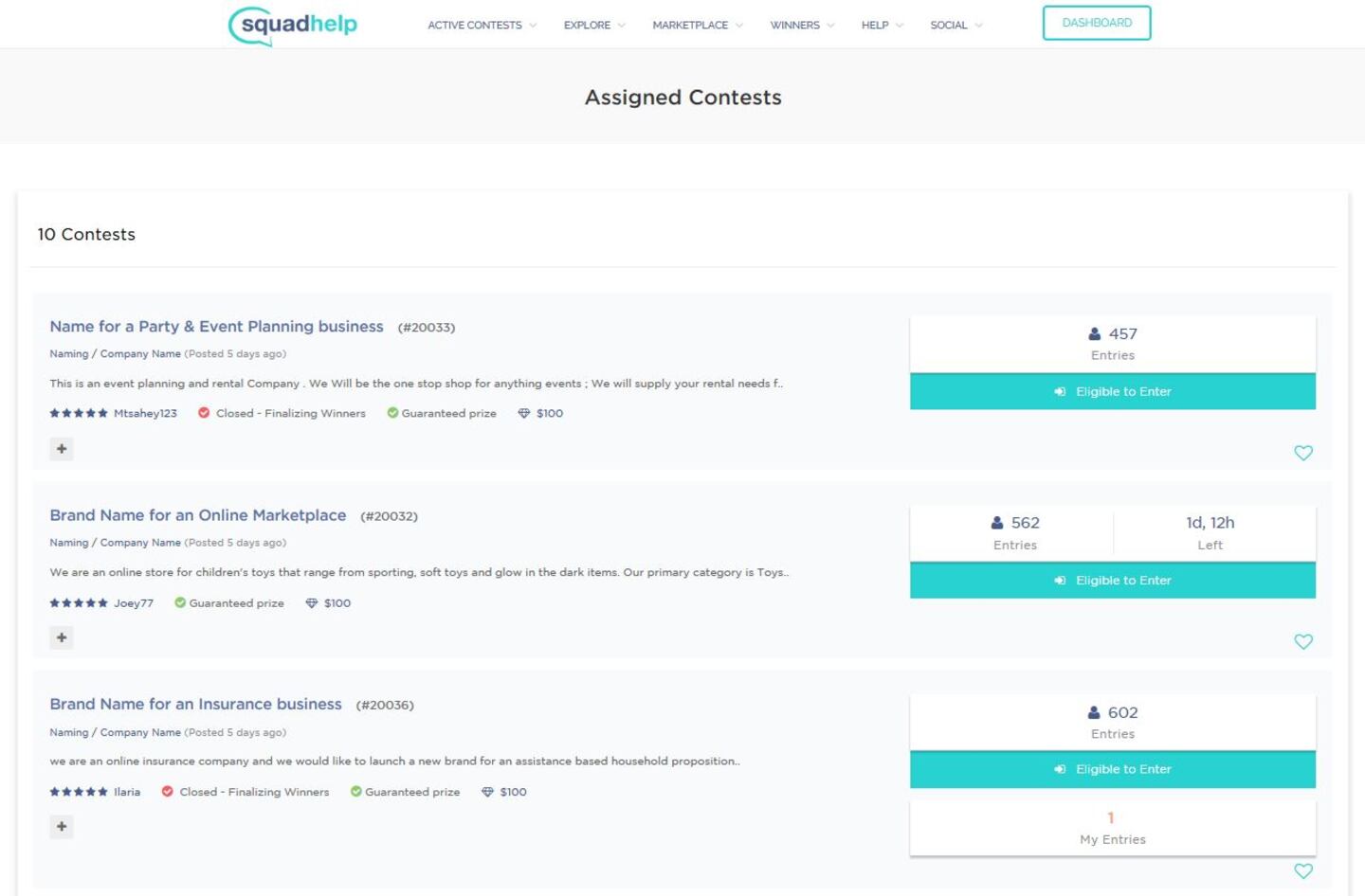 After you enter more of the initial contests open to you, SquadHelp gradually grants you access to their full range of contests. Some of these will pay upwards of $200 or $300.