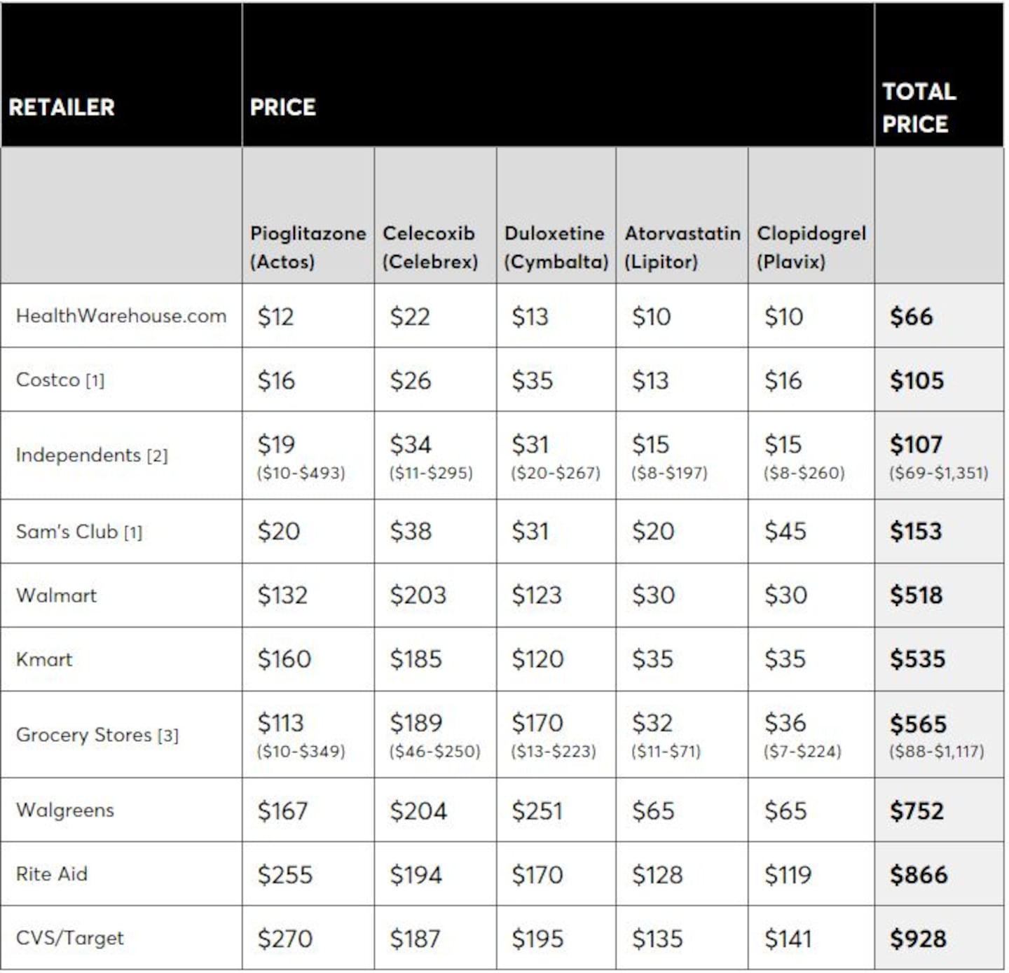 As you can see, Costco was the second-cheapest option out of a variety of big name pharmacies and independent players. They were bested only by HealthWarehouse.com.
