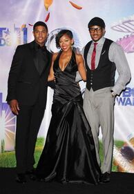 Photos: Meagan Good through the years 2011: Cast of "The Game" Pooch Hall (left), Meagan Good and Hosea Chanchez pose in the press room at the BET Awards '11 held at the Shrine Auditorium on June 26, 2011, in Los Angeles. (Jason Merritt/Getty Images)