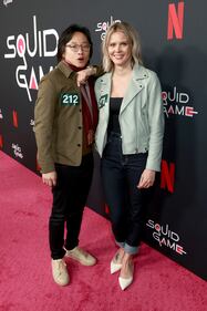 Photos: 'Squid Game' stars walk the red carpet at Los Angeles screening Jimmy O. Yang and Brianne Kimmel attend the Los Angeles screening of Netflix's "Squid Game" at NeueHouse Los Angeles on November 8, 2021, in Hollywood, California. (Matt Winkelmeyer/Getty Images)