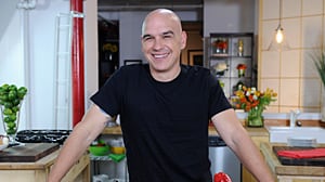 Symon grew up in a Greek and Sicilian family. Based in the Midwest, he enjoys riding his motorcycle through Cleveland, playing golf and gardening. He is known for his infectious laugh, and is an avid tattoo enthusiast who has a “Got Pork” tattoo emblazoned on his chest. Symon also enjoys spending time with his wife, Liz, and their two dogs, Ruby and Ozzy.