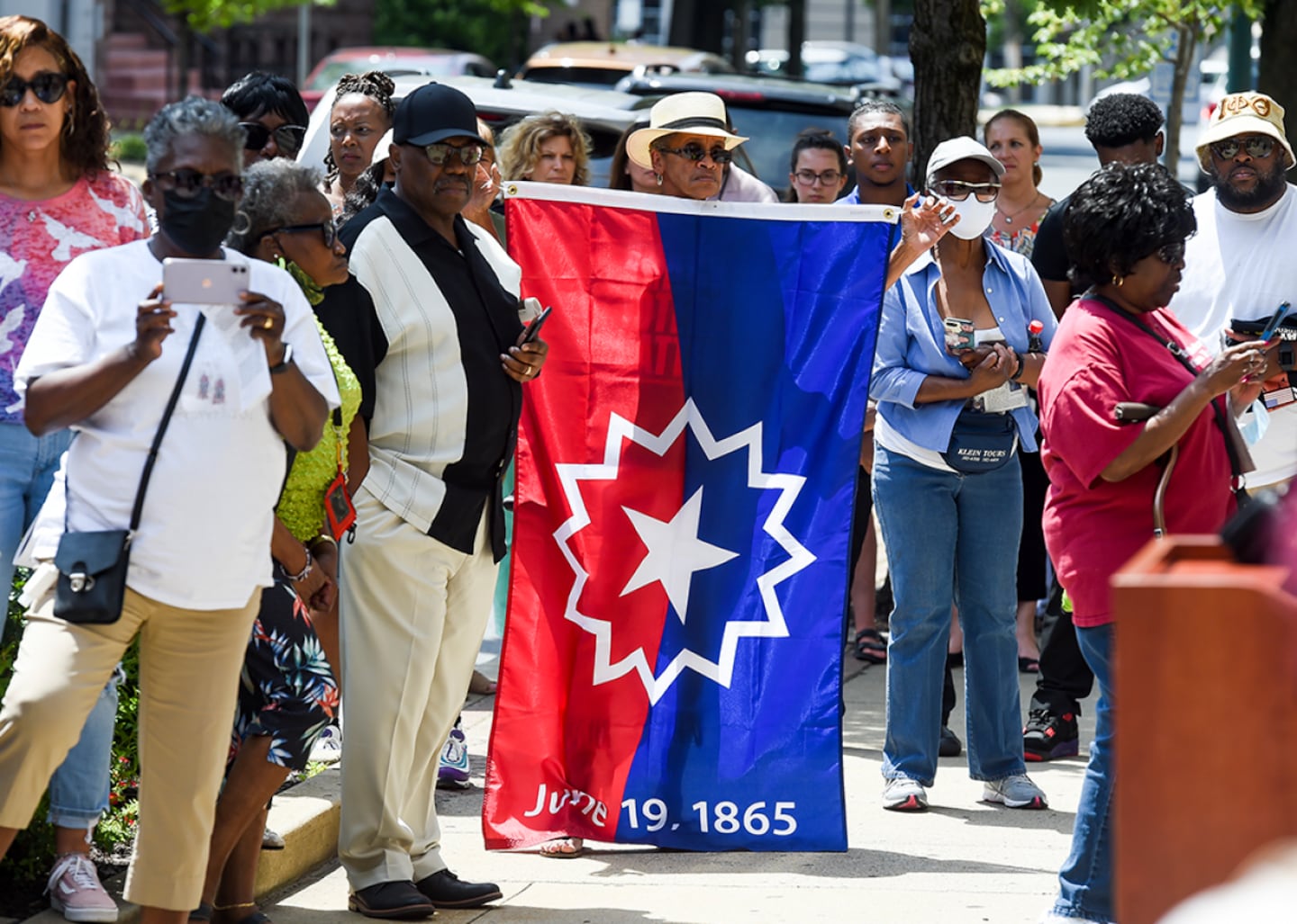 The Juneteenth flag at Reading City Hall in Pennsylvania in 2021