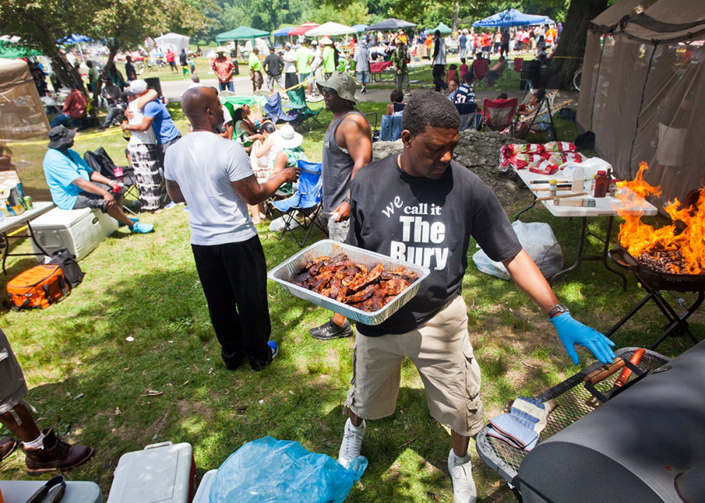 People grill in a Boston park on Juneteenth. Segregation kept Black people out of public parks for years, but some communities created their own parks for the express purpose of celebrating Juneteenth. Houston's Emancipation Park, founded in 1872, is one example of a public space created as a place "for Black communities to gather and mark the jubilation of the end of slavery in the Confederacy."
