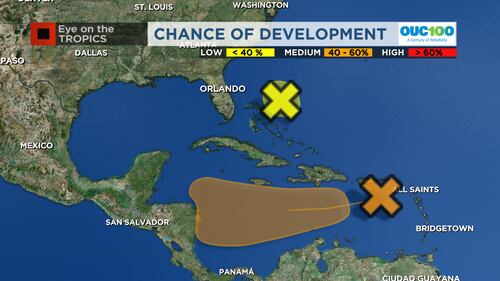 Low-pressure area near Puerto Rico has higher potential to become tropical depression Of the two disturbances we’ve been tracking, one just north of the Bahamas doesn’t have much chance of development after encountering stronger upper-level winds. (WFTV/WFTV)