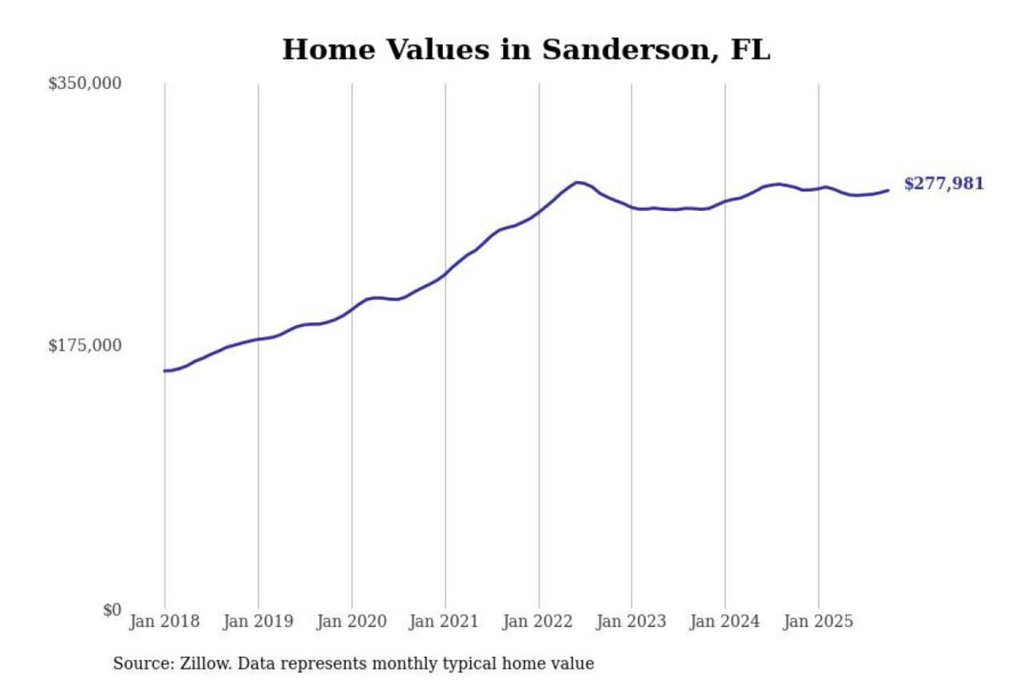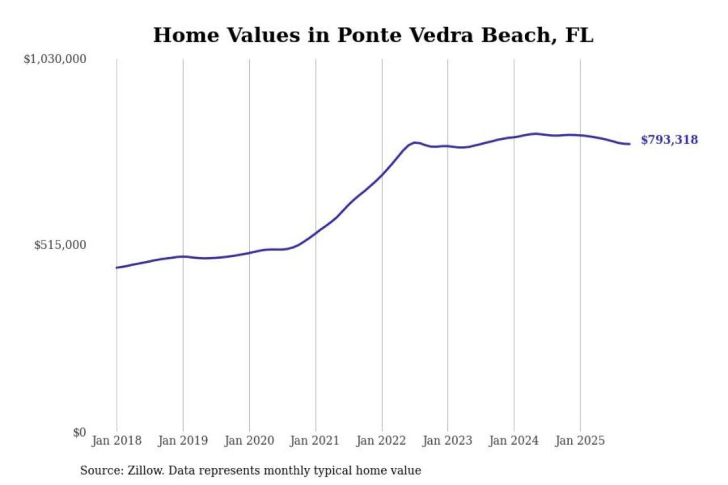 Stacker compiled a list of cities with the most expensive homes in the Jacksonville, FL metro area using data from Zillow. Charts show the monthly typical home value since January 2018.