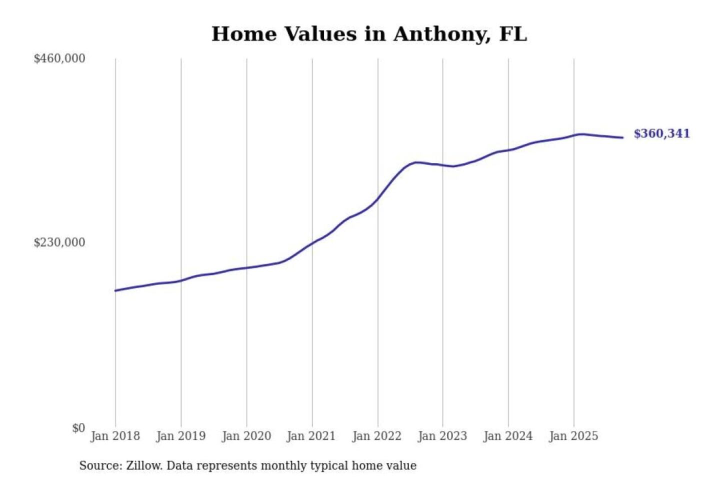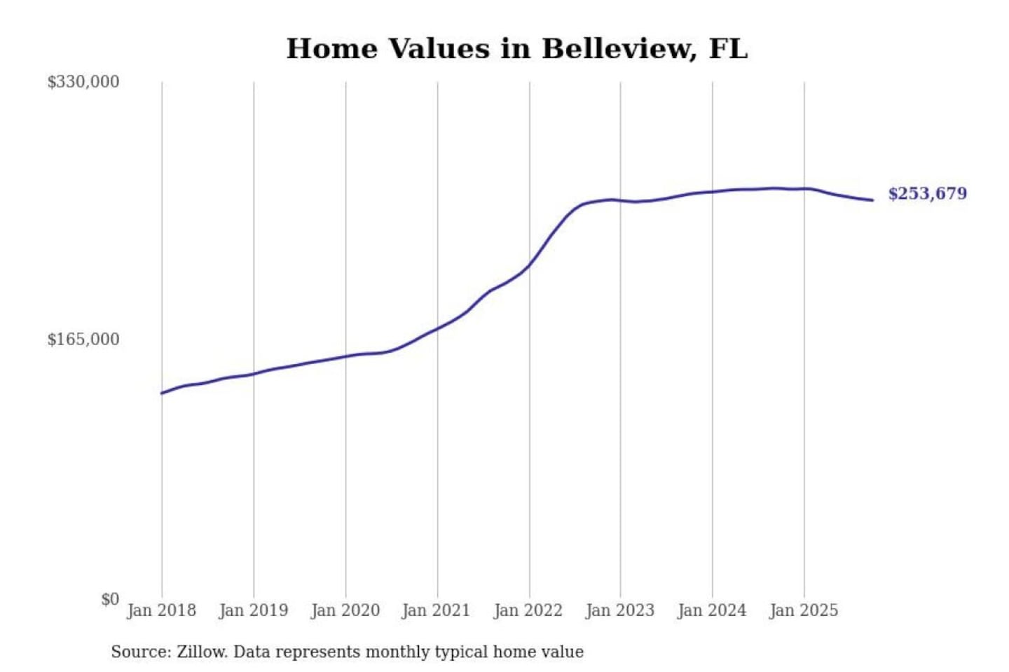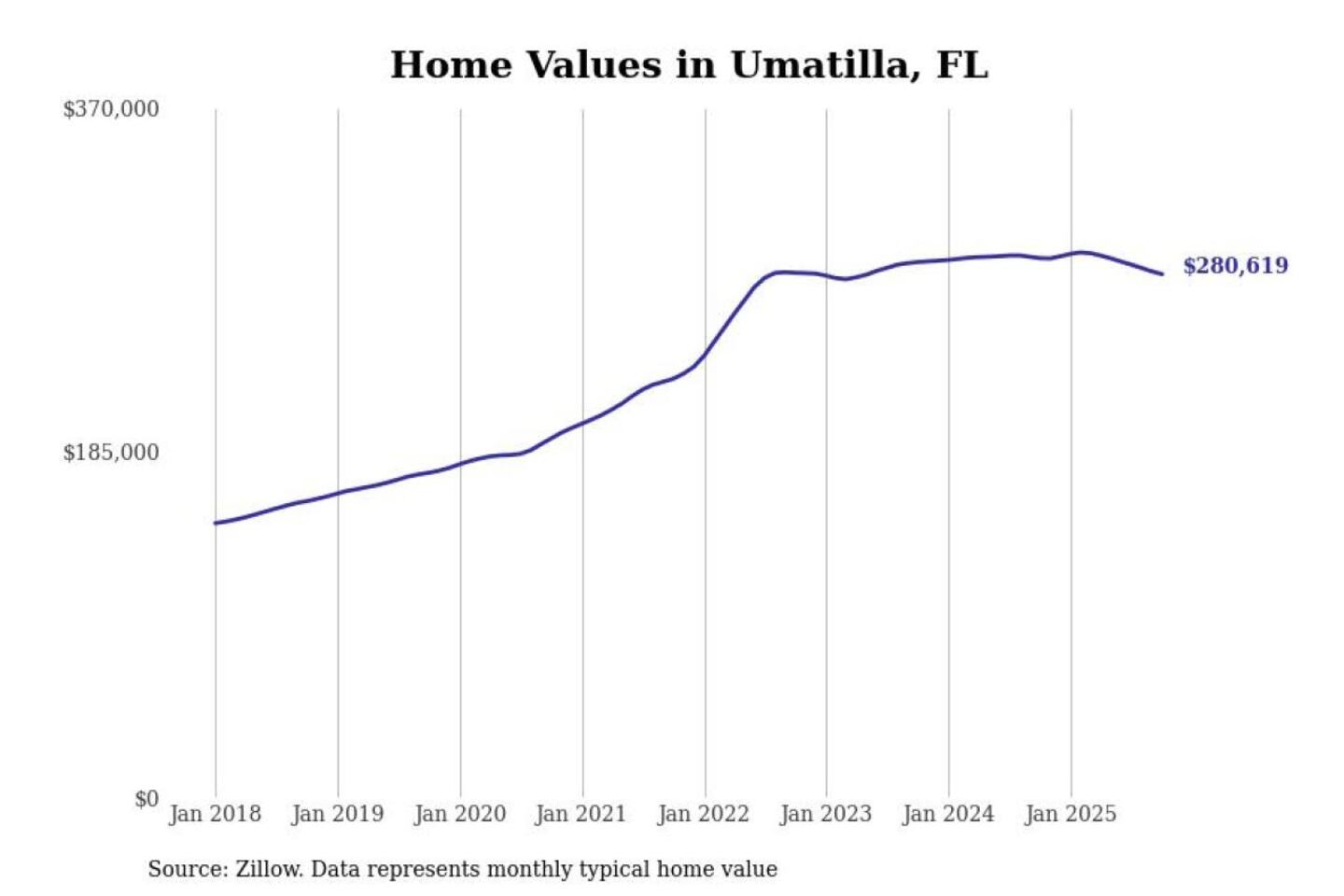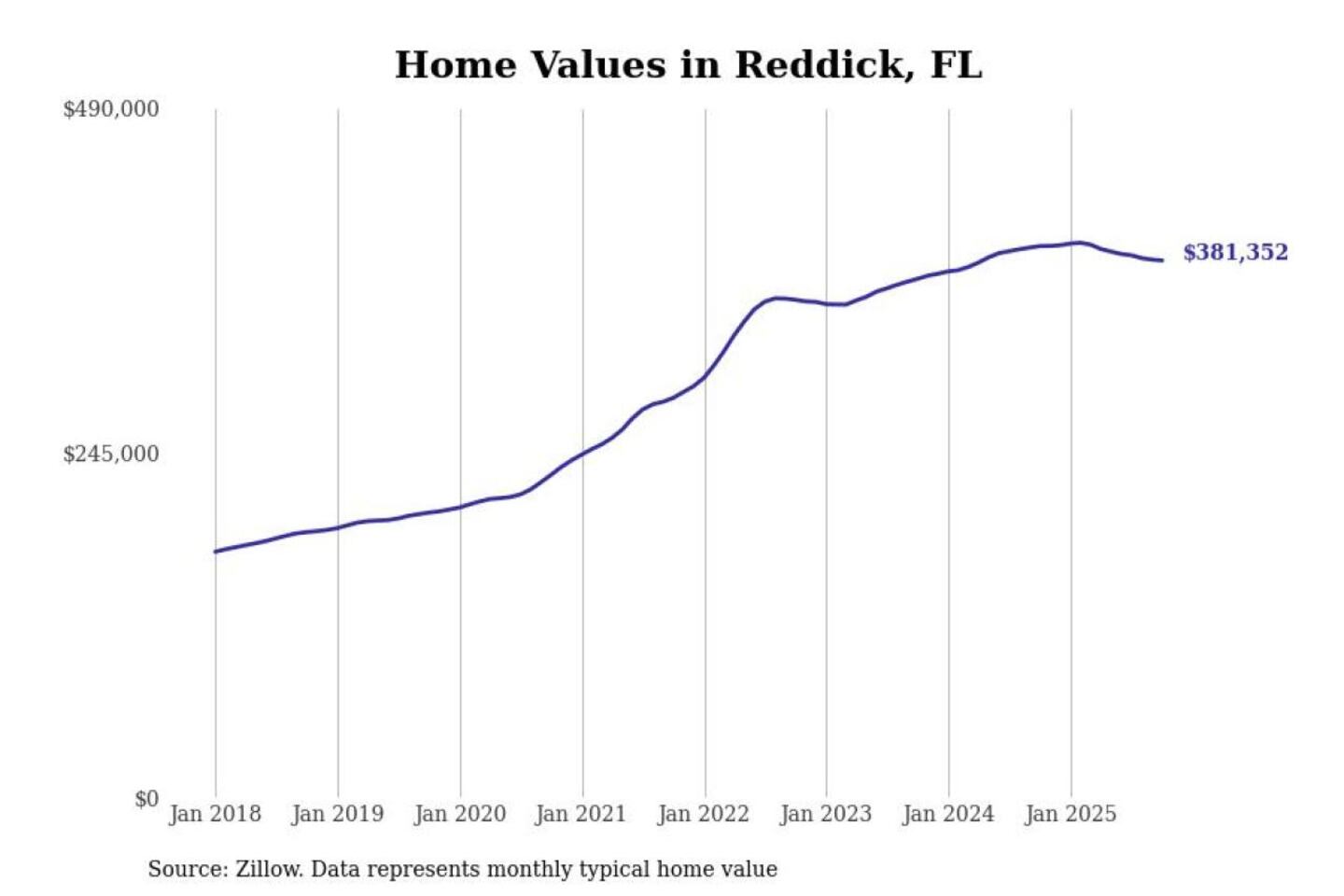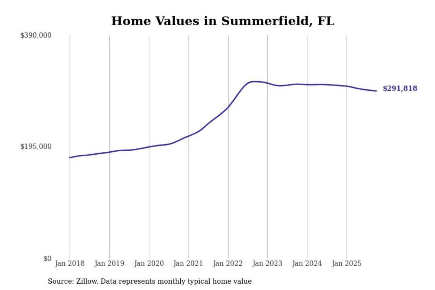 Stacker compiled a list of cities with the most expensive homes in the Ocala, FL metro area using data from Zillow. Charts show the monthly typical home value since January 2018.