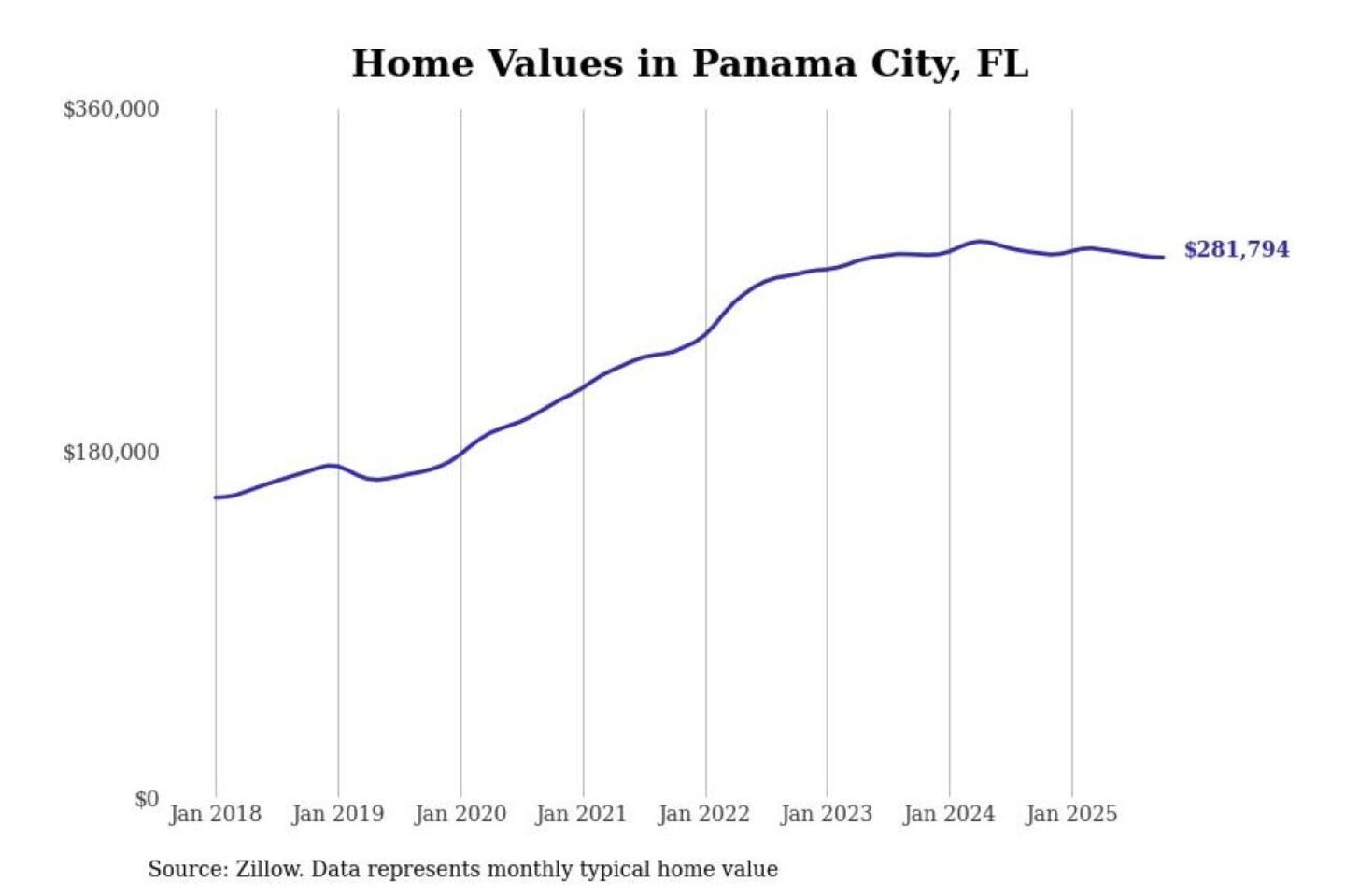 Stacker compiled a list of cities with the most expensive homes in the Panama City, FL metro area using data from Zillow. Charts show the monthly typical home value since January 2018.