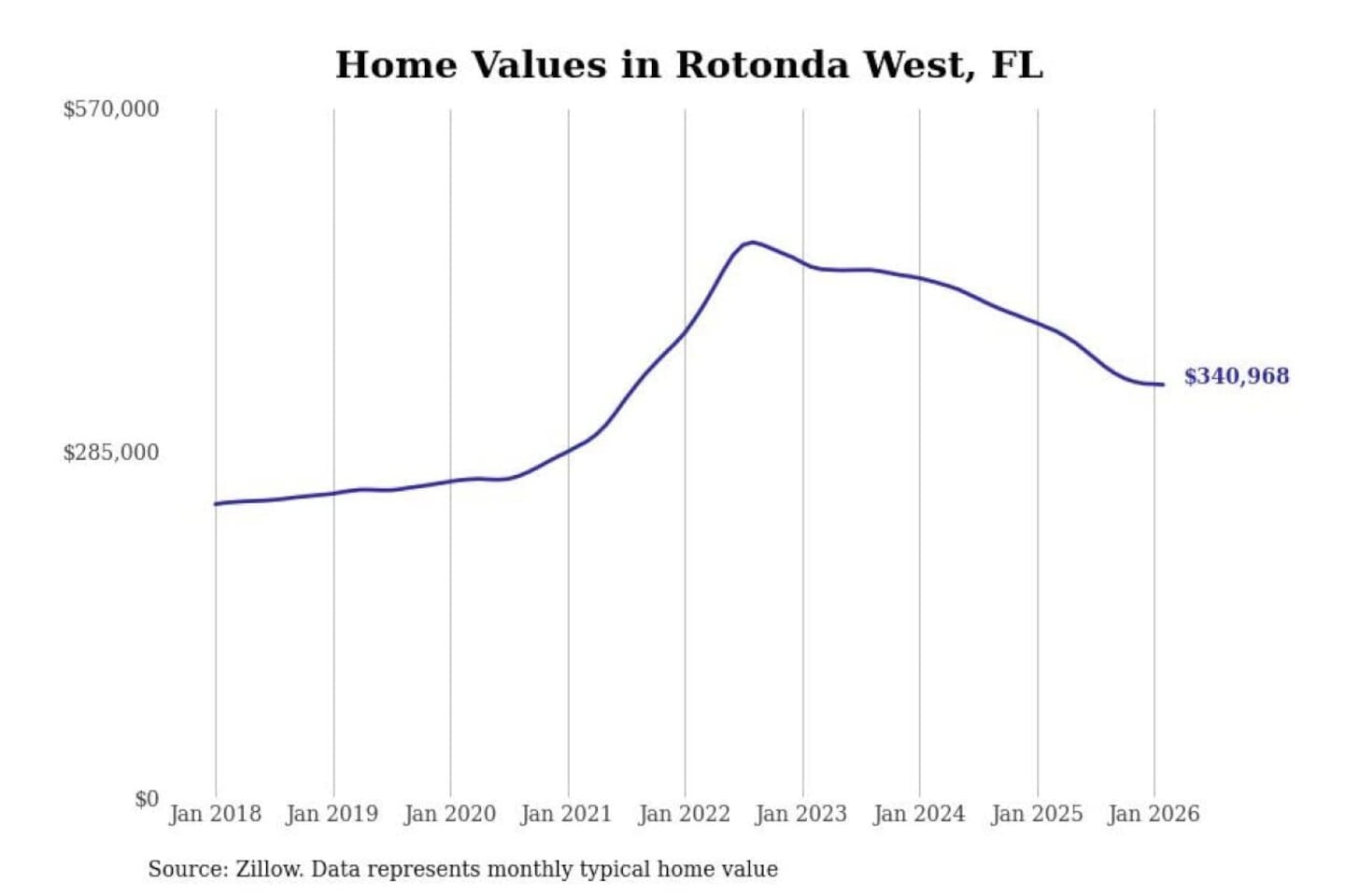 Stacker compiled a list of cities with the most expensive homes in the Punta Gorda, FL metro area using data from Zillow. Charts show the monthly typical home value since January 2018.