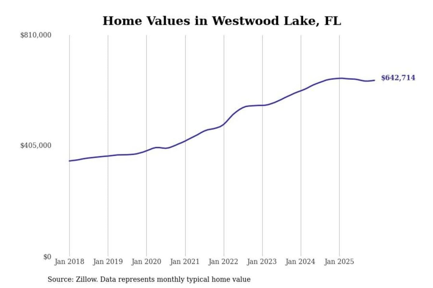 Stacker compiled a list of cities with the most expensive homes in the Miami-Fort Lauderdale-Pompano Beach, FL metro area using data from Zillow. Charts show the monthly typical home value since January 2018.