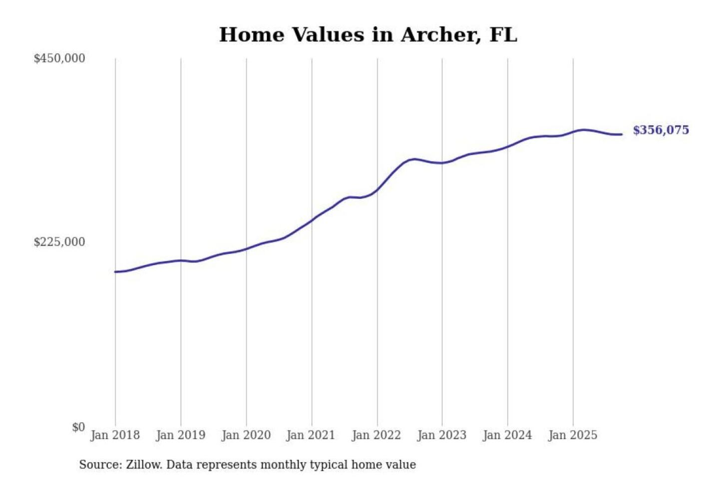 Stacker compiled a list of cities with the most expensive homes in the Gainesville metro area using data from Zillow. Charts show the monthly typical home value since January 2018. All 21 cities and towns with data available were included in the list.