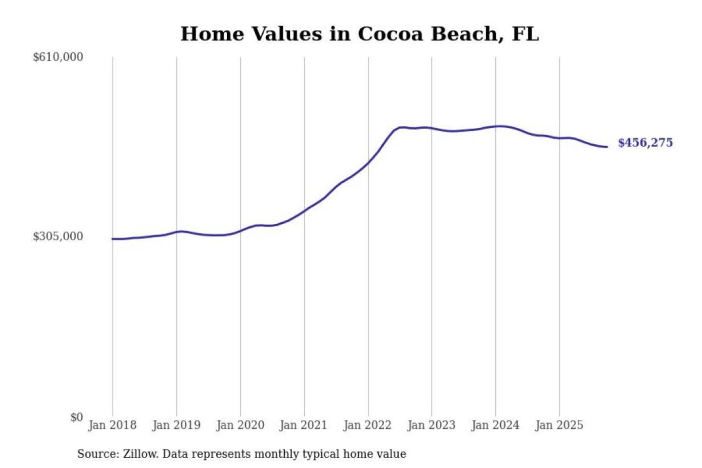 Stacker compiled a list of cities with the most expensive homes in the Palm Bay metro area using data from Zillow. Charts show the monthly typical home value since January 2018. All 19 cities and towns with data available were included in the list.