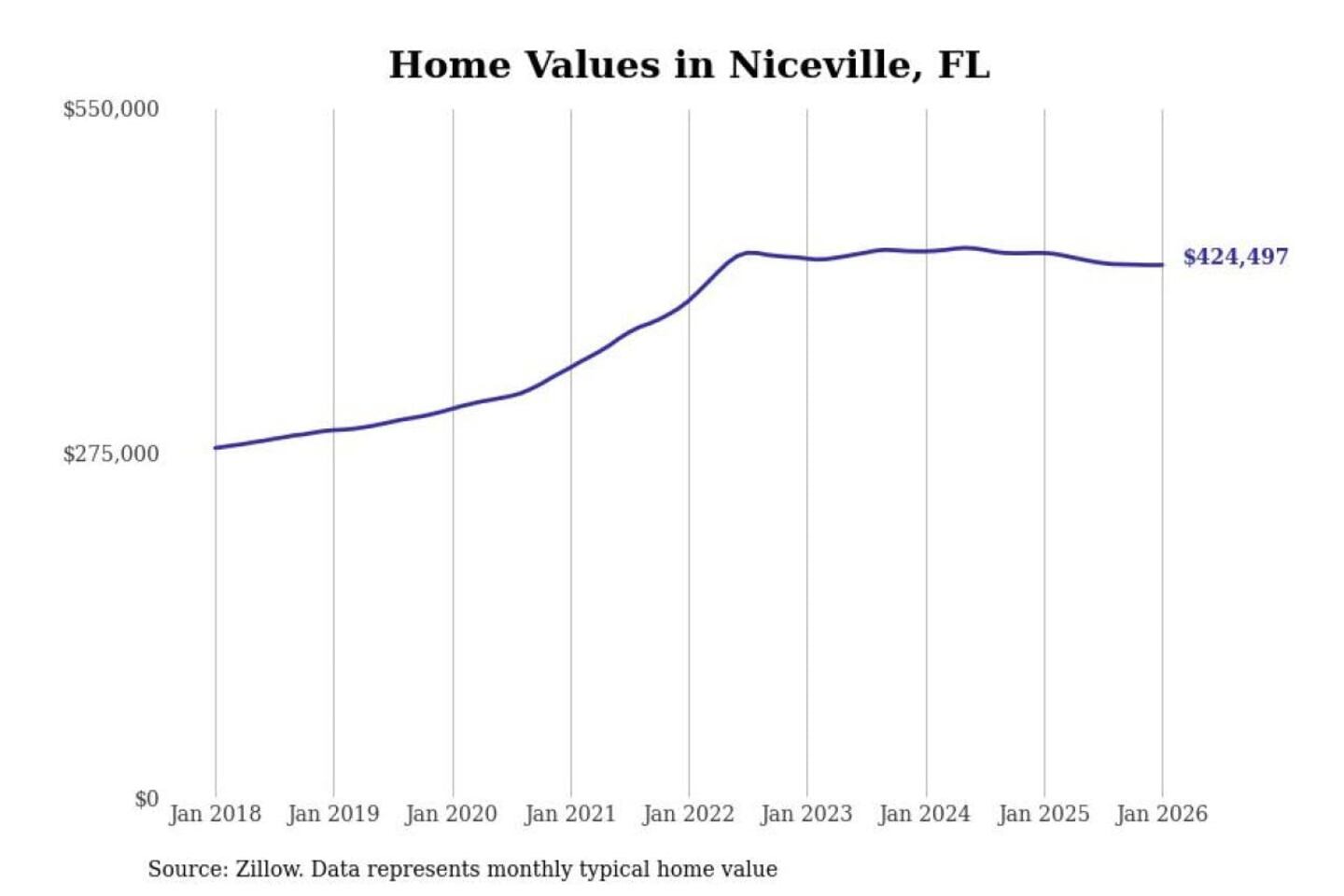 - Typical home value: $424,497