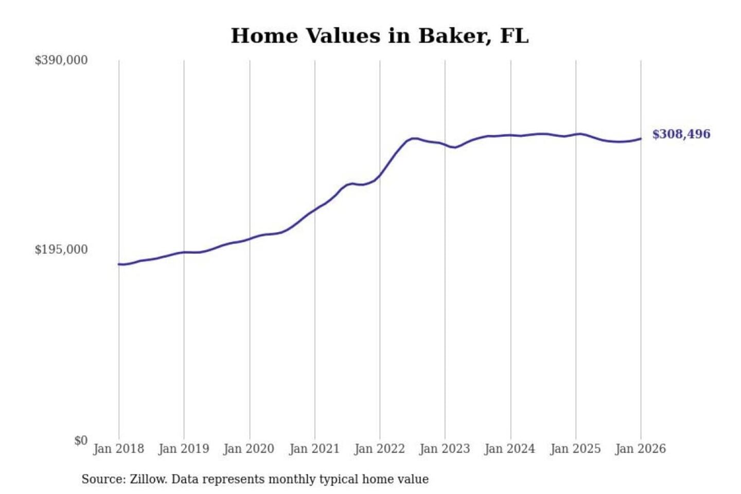 - Typical home value: $308,496
