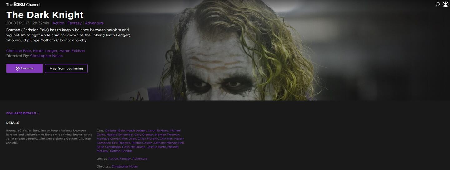 If you’re using your Roku.com account while viewing, you’re going to be able to resume your content if you had to stop before it was over. That would include switching platforms. So, for example, you could start watching a movie on your Roku streaming device and finish it on The Roku Channel’s website.