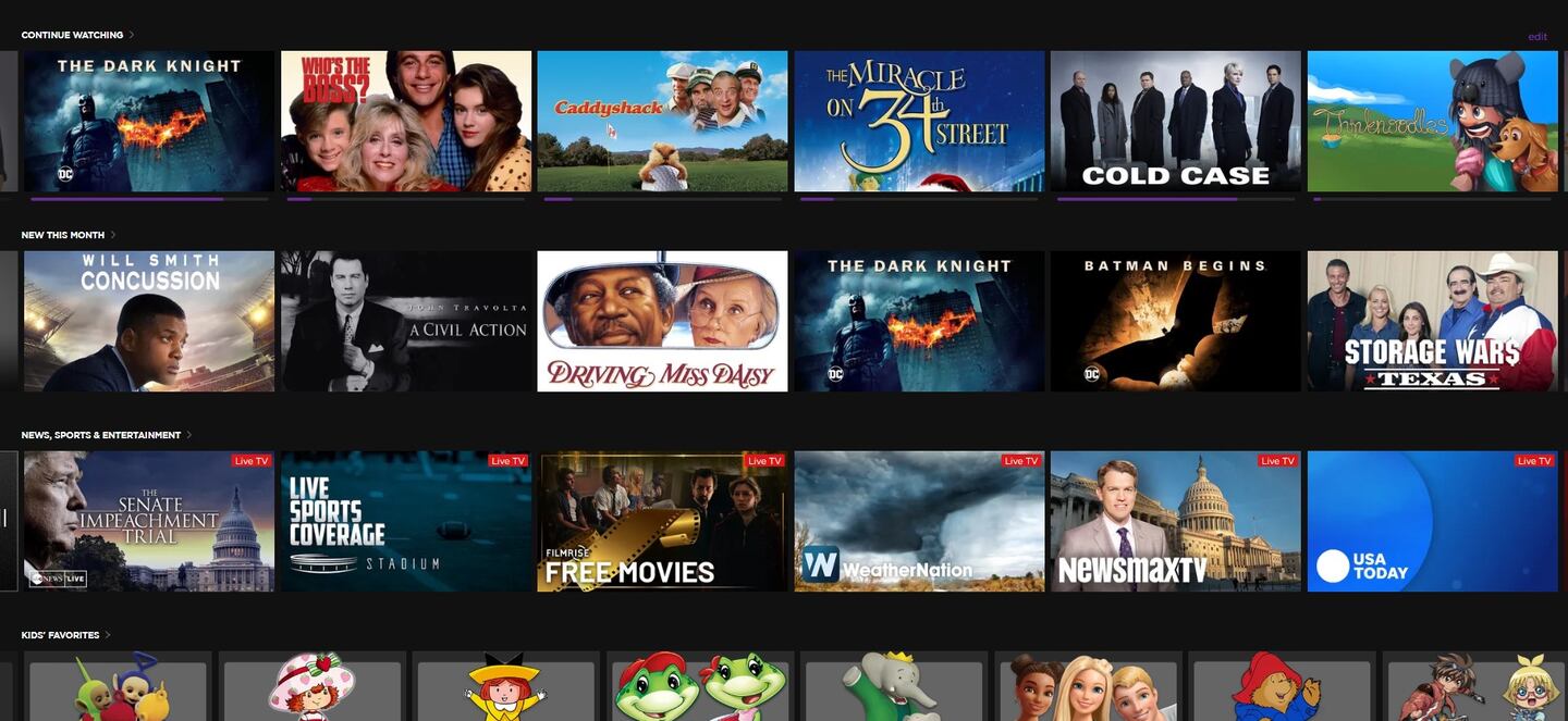 As is the case for many of the free streaming TV options on the market, the library of on-demand movies is a little bit dated. You’re not going to find a popular new release for free on this service, but what you can find are several well-known titles that were box office hits at one point. You’ll get plenty of big stars, with titles that feature Will Smith, Christian Bale, John Travolta and Arnold Schwarzenegger, among others. Here are some of the more recognizable titles: