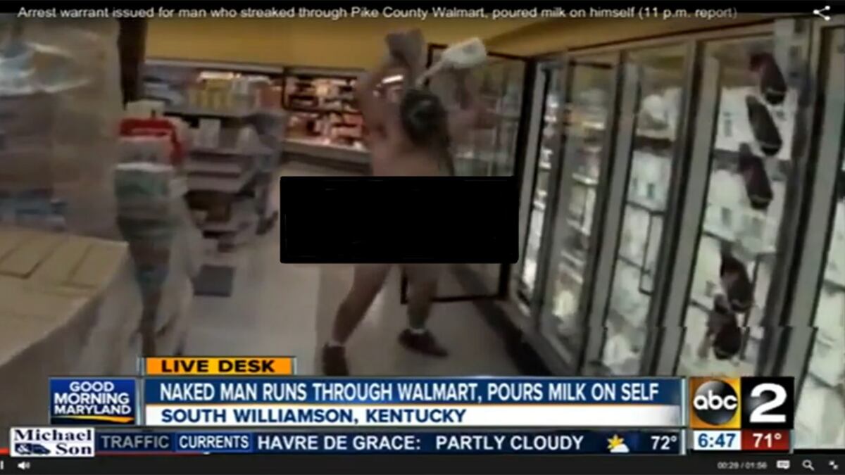 SOUTH WILLIAMSON, Ky. — A man ran into a Kentucky Walmart, screaming that he was on fire and wearing only shoes, socks and a Halloween mask, then poured milk all over himself, according to WYMT in Kentucky.