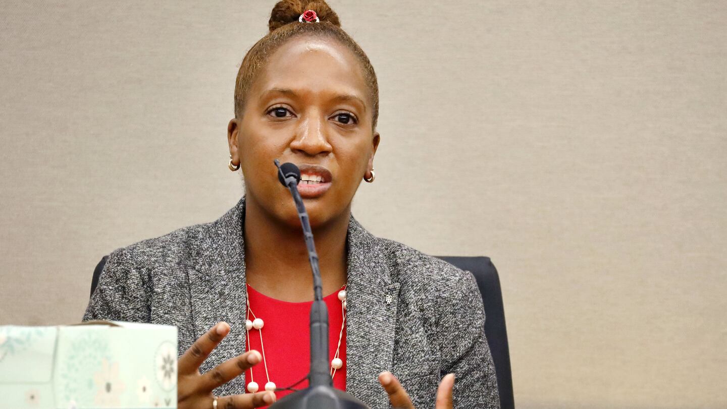 Allison Jean leaves court in Dallas on Tuesday, Oct. 1, 2019, after former police officer Amber Guyger's conviction for the 2018 murder of Jean's son, Botham Jean. Guyger shot Botham Jean, her neighbor, after going to his apartment by mistake.