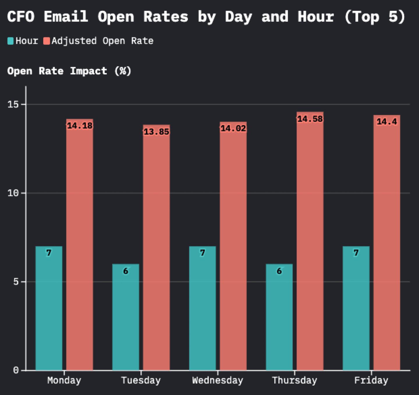 Pythia’s pattern recognition across high-performing sequences revealed a clear behavioral rhythm: CFOs check email early — before their day becomes reactive.