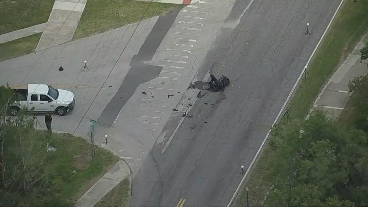 VOLUSIA COUNTY, Fla. — One person died after a crash involving a pickup truck and a motorcycle scooter near a Volusia County middle school Wednesday afternoon.