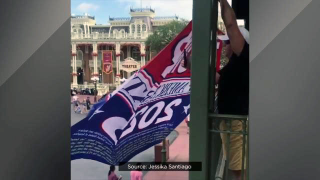 Disney’s park rules state that, "the usage of any flag, banner or sign to incite a crowd" is prohibited.