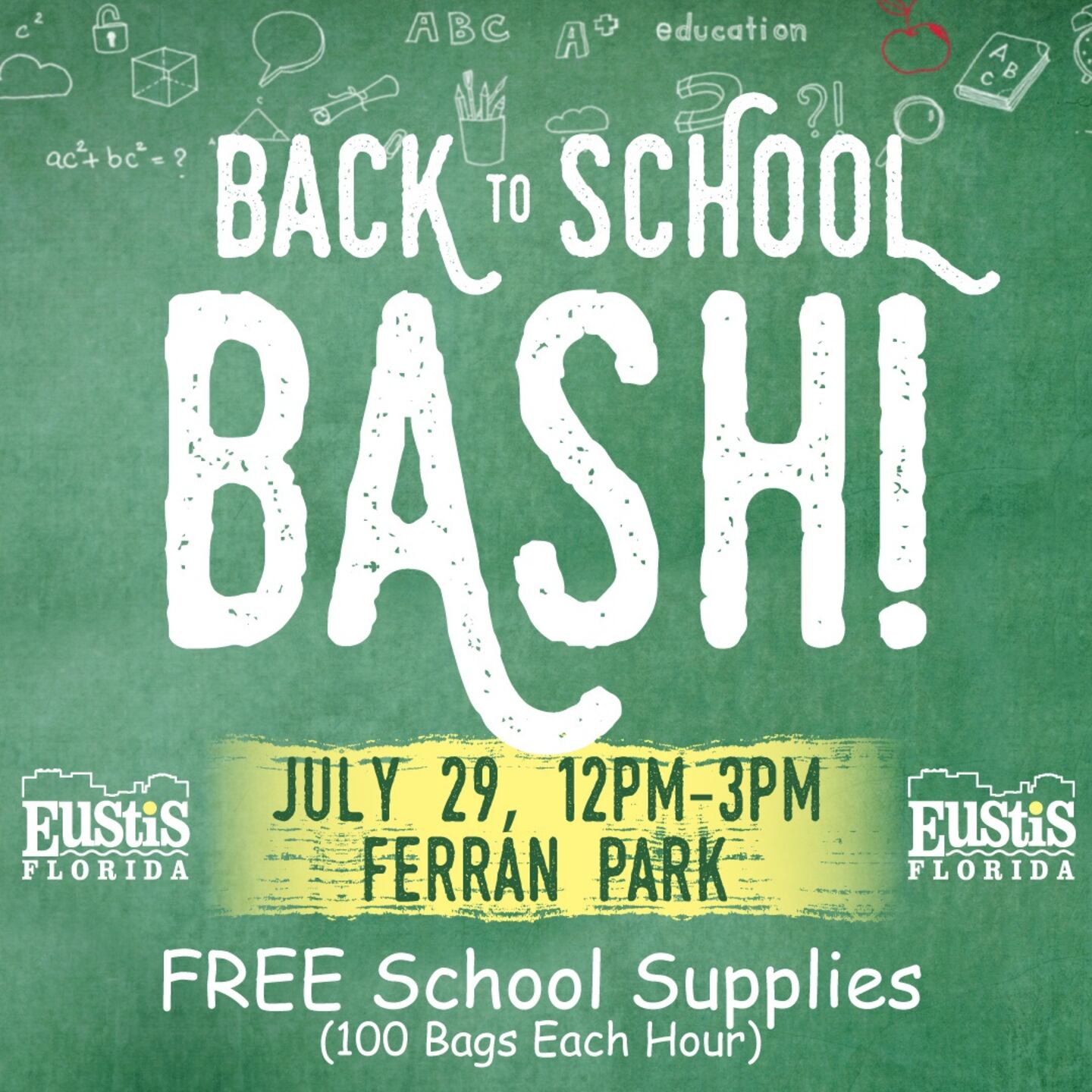 The Eustis Events and Tourism team has paired the event with the annual Back to School Bash on Saturday, July 29, where there will be vendors, food trucks, bounce houses, and more. The city will be distributing 100 backpacks per hour to local school-aged residents from 12 p.m. to 3 p.m., while supplies last.