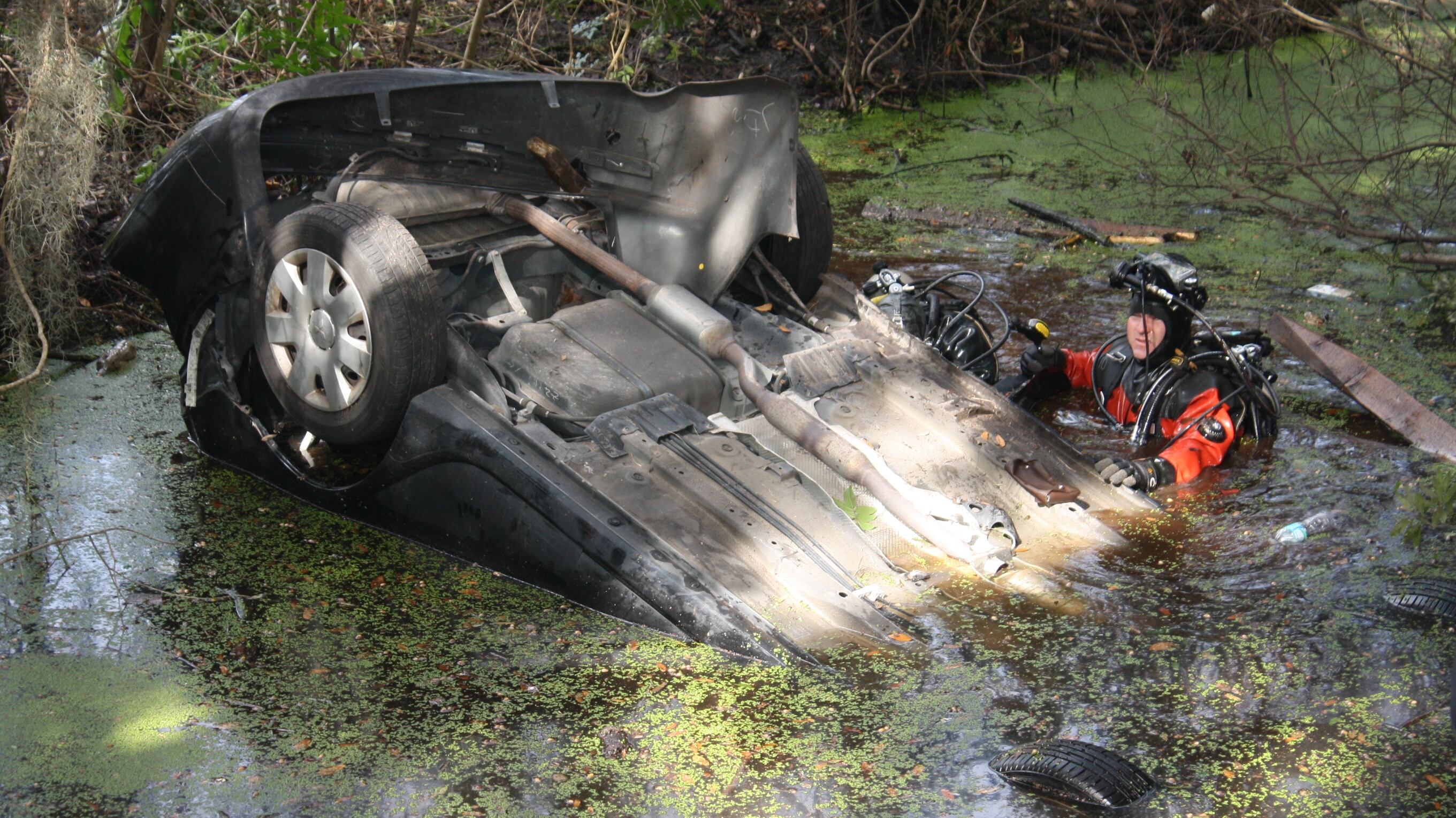 According to investigators, the crash involved a single vehicle that left the roadway for unknown reasons and landed upside down in a creek. The car was partially submerged in about five feet of water.