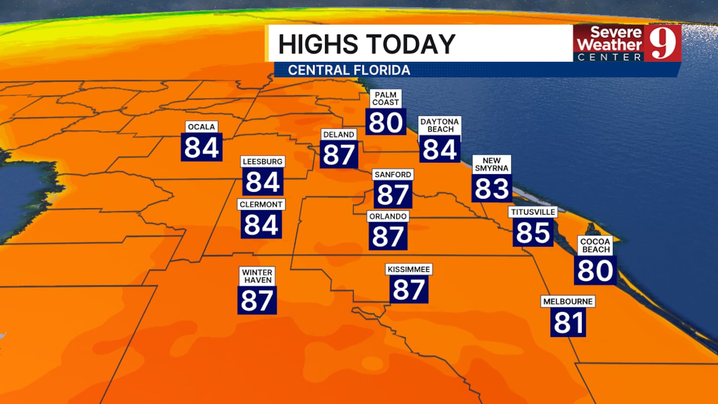 Unlike Saturday, they are more likely to happen in areas such as Orlando, Sanford, DeLand, and Kissimmee.