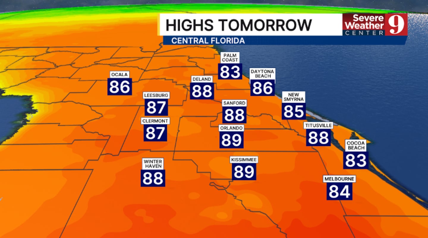 Ahead of it, records or near-record highs are again expected Saturday. Temps to start the weekend will soar into the upper 80s.