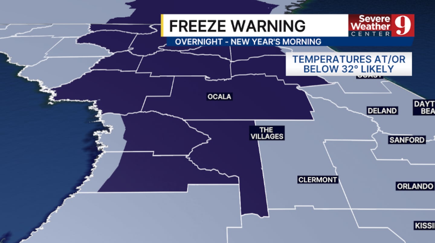 A Frost Advisory is in effect for much of Central Florida overnight, with a Freeze Warning for far northwest areas.