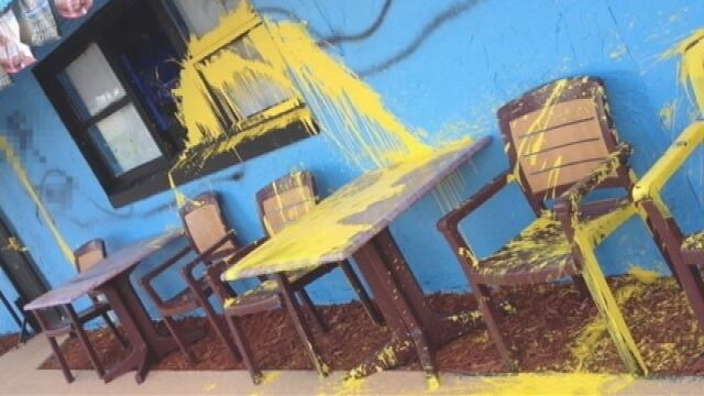 In addition to the spray painted slurs, yellow paint was splashed all over the bar, Gertis said.