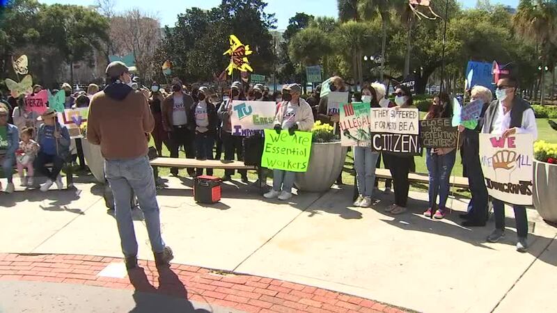ORLANDO, Fla. — Dozens of people gathered at Lake Eola Monday in support of the immigrant community.