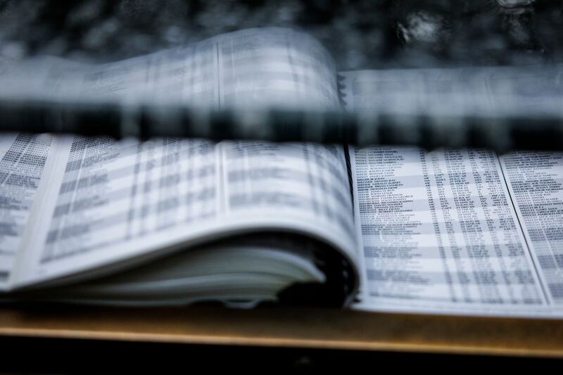 Memorial Day 2023: A directory of the names found on the wall at the Vietnam Veterans Memorial is seen under rain-covered glass during Memorial Day. (Samuel Corum/Getty Images)