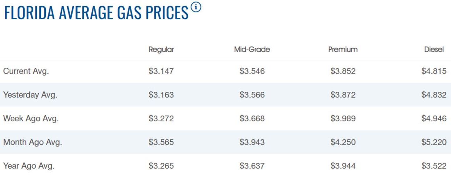 This means that compared to mid-June, when Florida set a record of $4.89 per gallon, you’ll spend about $28 less to fill up your tank than you did six months ago.
