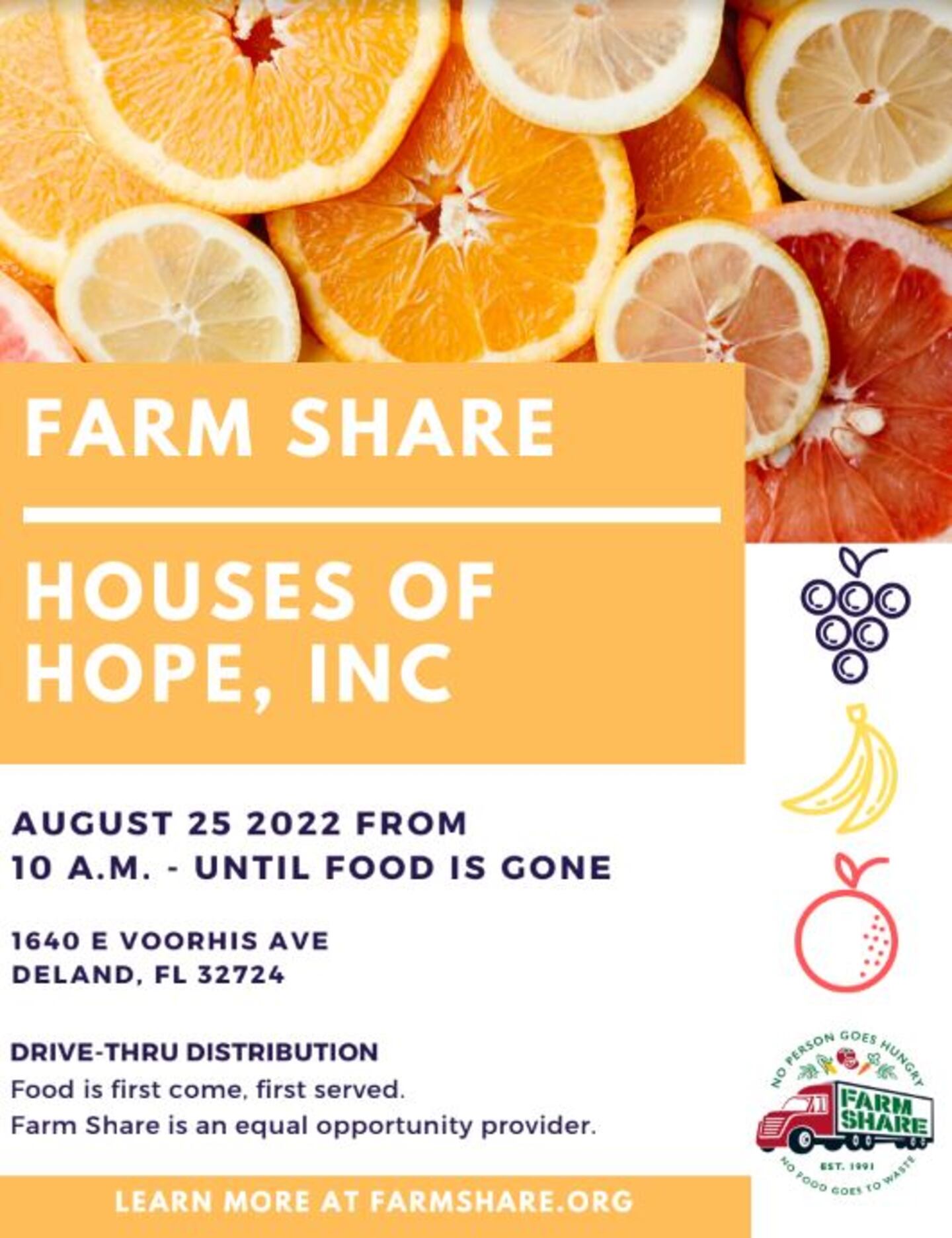 Farm Share, a nonprofit that aims to help food-insecure residents in Florida, will hold a food giveaway.