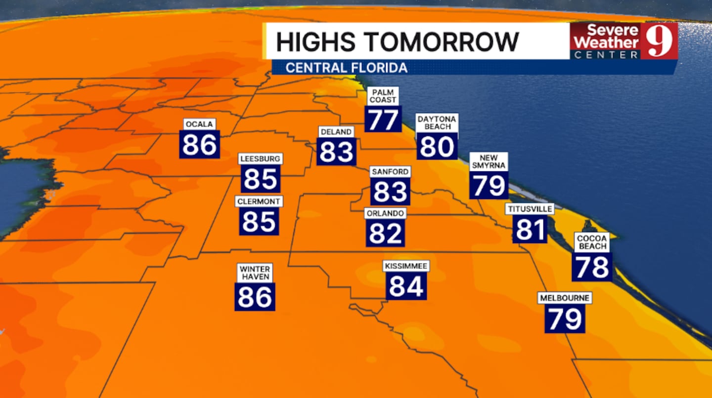 The dry conditions continue for Monday. We’ll see a few more clouds across the area, with highs again in the low 80s.
