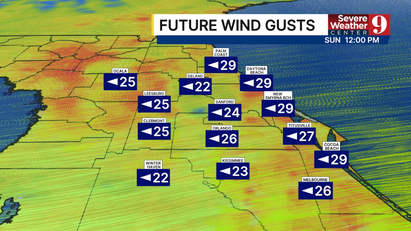 Central Florida could see consistent winds today between 15 and 20 mph, gusting to 25mph.