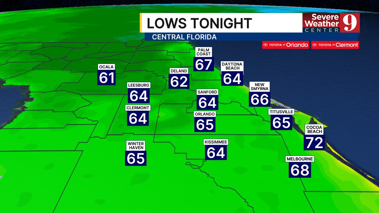 Orlando will get down to 65 overnight (For reference, we got down to 63 last night).