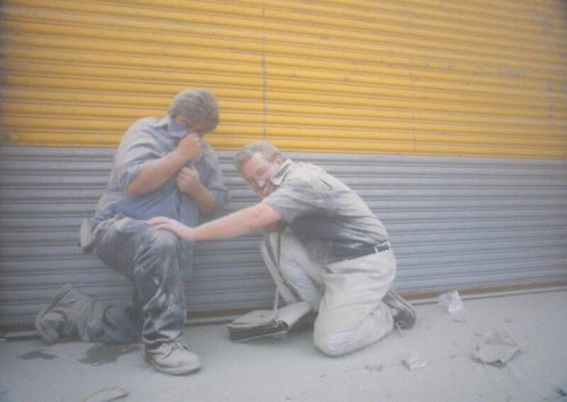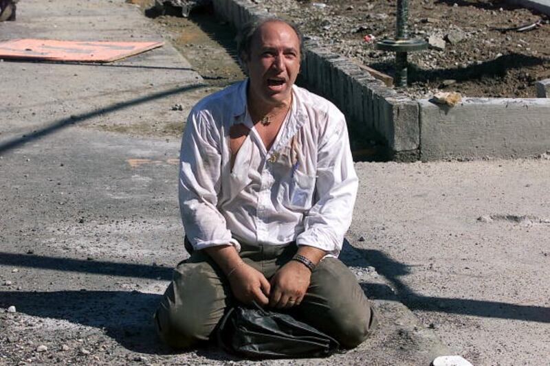 Remembering 9/11 A survivor sits outside the World Trade Center after two planes hit the building September 11, 2001 in New York City. (Photo by Jose Jimenez/Primera Hora/Getty Images) (Angela Jimenez/Getty Images)
