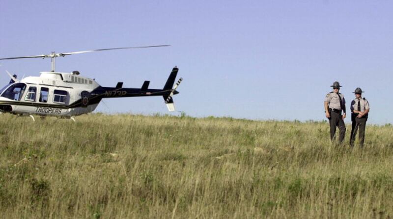 Remembering 9/11 An unidentified Pennsylvania State Trooper stands guard 11 September 2001 at the crash site of United Airlines Flight 93 in Shanksville, Pennsylvania. The mound of dirt in the center of the field is the crater made by the plane's impact. The plane from Newark, New Jersey, and bound for San Francisco, California, was hijacked and crashed in the field. Forty-five people were on board the plane, and there were no survivors. AFP PHOTO/David MAXWELL (Photo credit should read DAVID MAXWELL/AFP via Getty Images) (DAVID MAXWELL/AFP via Getty Images)