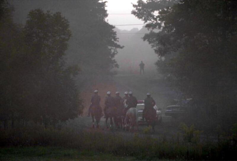 Remembering 9/11 Mounted police make their way along an access road leading to the crash site of United Airlines Flight 93 through the early morning fog 12 September 2001 in Shanksville, Pennsylvania. The plane was hijacked and crashed killing all 45 on board. AFP PHOTO/David MAXWELL (Photo credit should read DAVID MAXWELL/AFP via Getty Images) (DAVID MAXWELL/AFP via Getty Images)