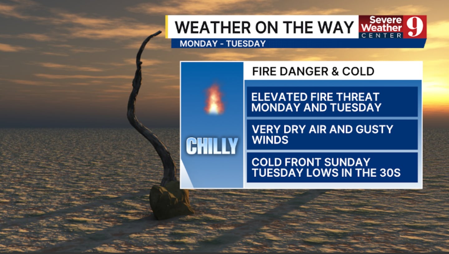 Stay with Severe Weather Center 9 for the latest on the fire threat and the cold temps in the coming days.