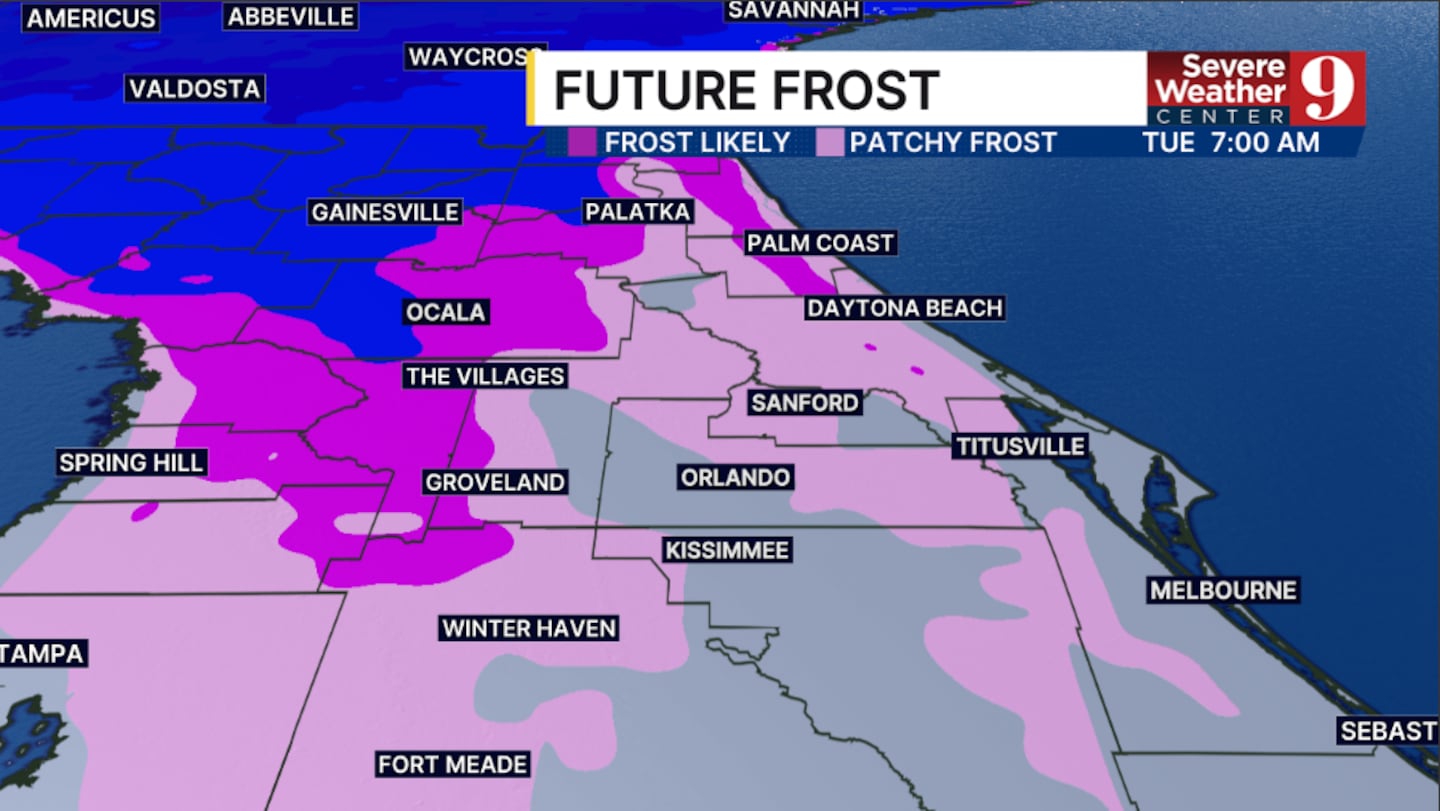 A strong cold front will push into Central Florida on Sunday, ushering in much drier, colder conditions.
