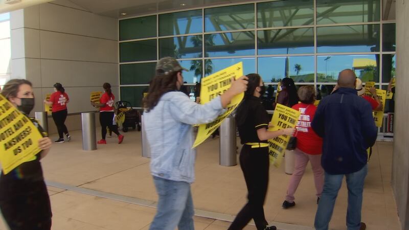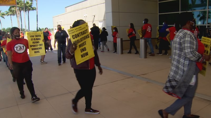 Several flight attendants grabbed signs this week and protested outside of Orlando International Airport.