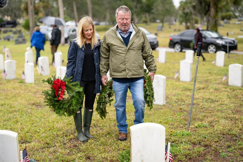 The Orlando Police Department Honor Guard presented the colors, sang the National Anthem, and played taps before everyone grabbed a wreath to lay in front of a veteran’s grave site.