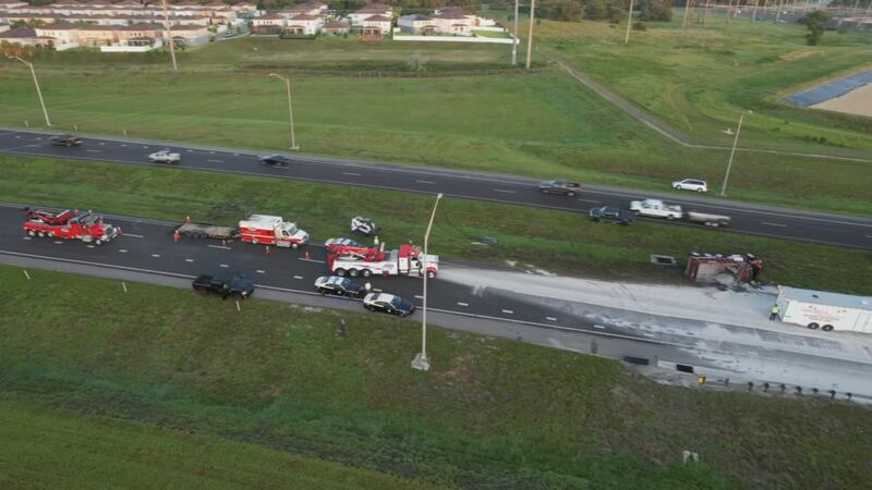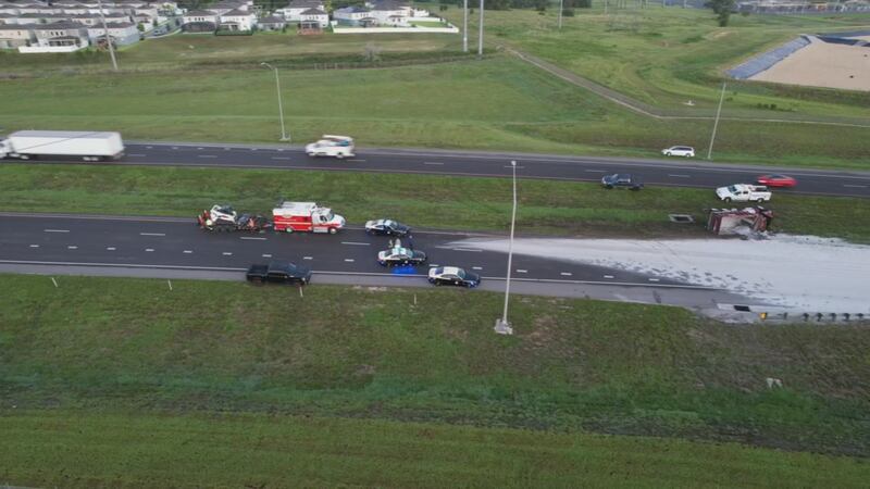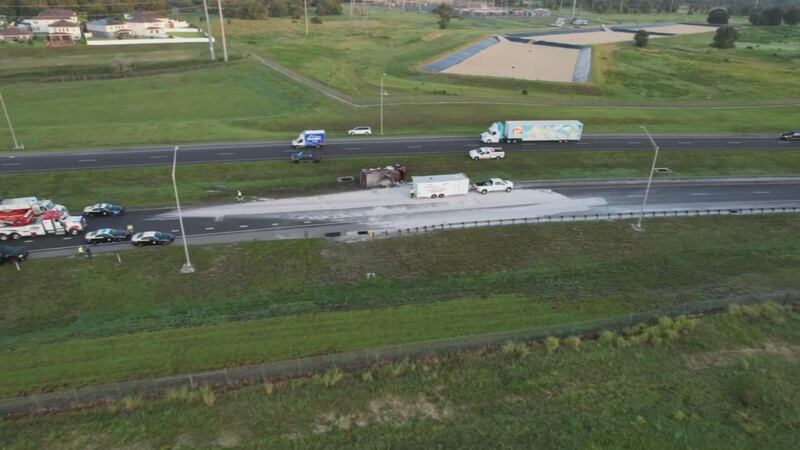 Photos: Dump truck overturns, spills sand on stretch of SR 429